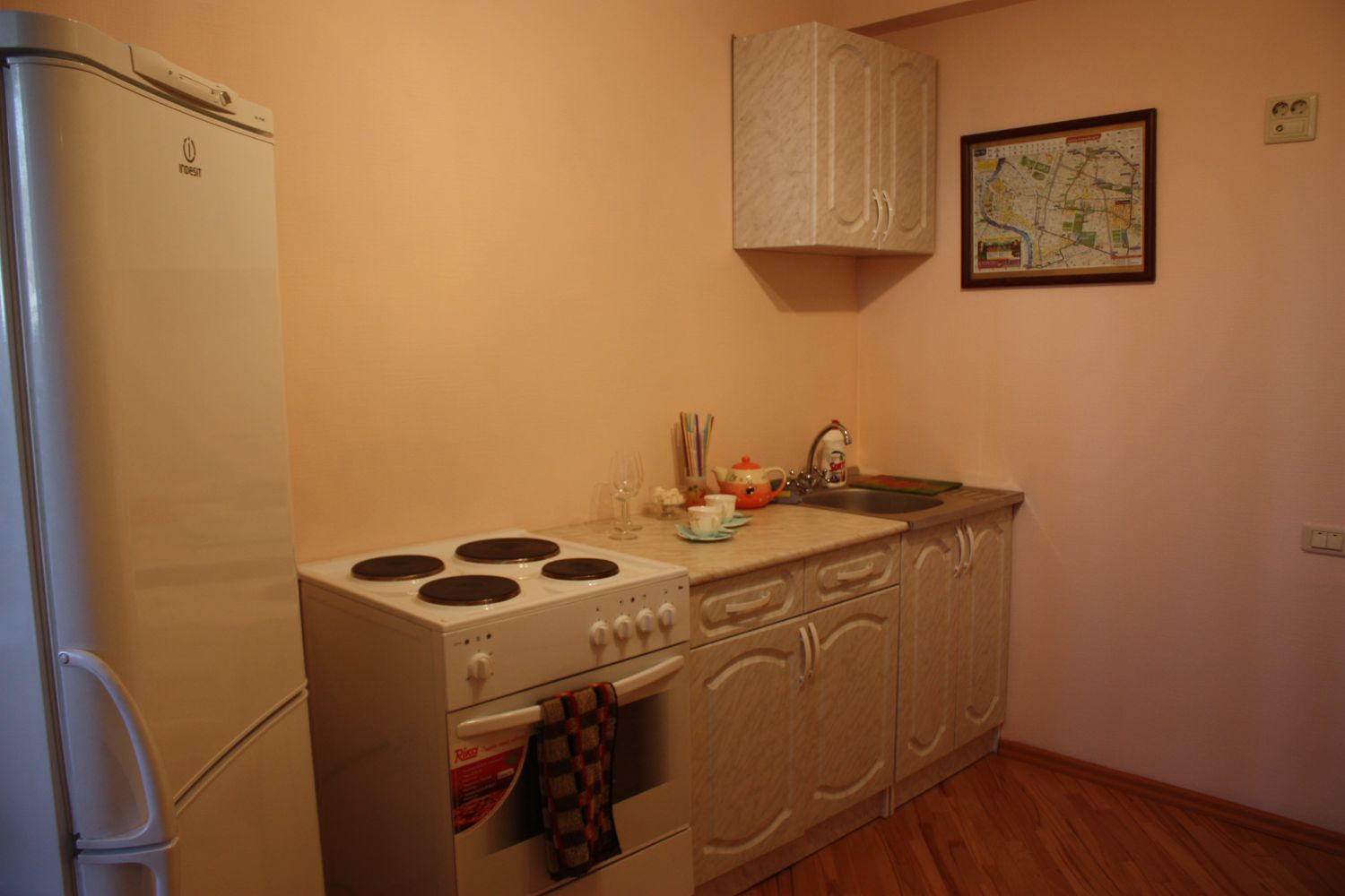 - оборудованная кухня. Посуда, бокалы.