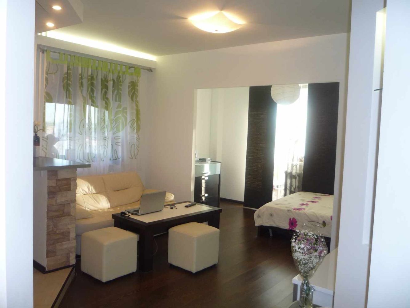 Комфортабельная студия со встроенной кухней и ванной комнатой. В номере одна двуспальная кровать, кожаный раскладной диван (при необходимости размещение до 4-х человек), платяной шкаф, барная стойка, ЖК телевизор, 98 спутниковых каналов, встроенная кухня (духовой шкаф, раковина, вся необходимая посуда, столовые приборы). В ванной комнате - ванна, раковина, туалет, большое зеркало. Застекленная лоджия 17 кв.м с потрясающим видом с высоты птичьего полета. Всегда идеально чистое постельное белье, полотенца, средства гигиены входят в стоимость проживания. Окна квартиры выходят на проспект Ленина и улицу Труда.