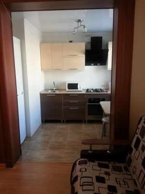 Квартира на двух-трех человек в центре города. В квартире новый ремонт, ламинат, на балконе теплый пол, на окнах жалюзи. Встроенная кухня, ЖК телевизор, вместительный шкаф-купе, спальные места в комплектации 2+1.